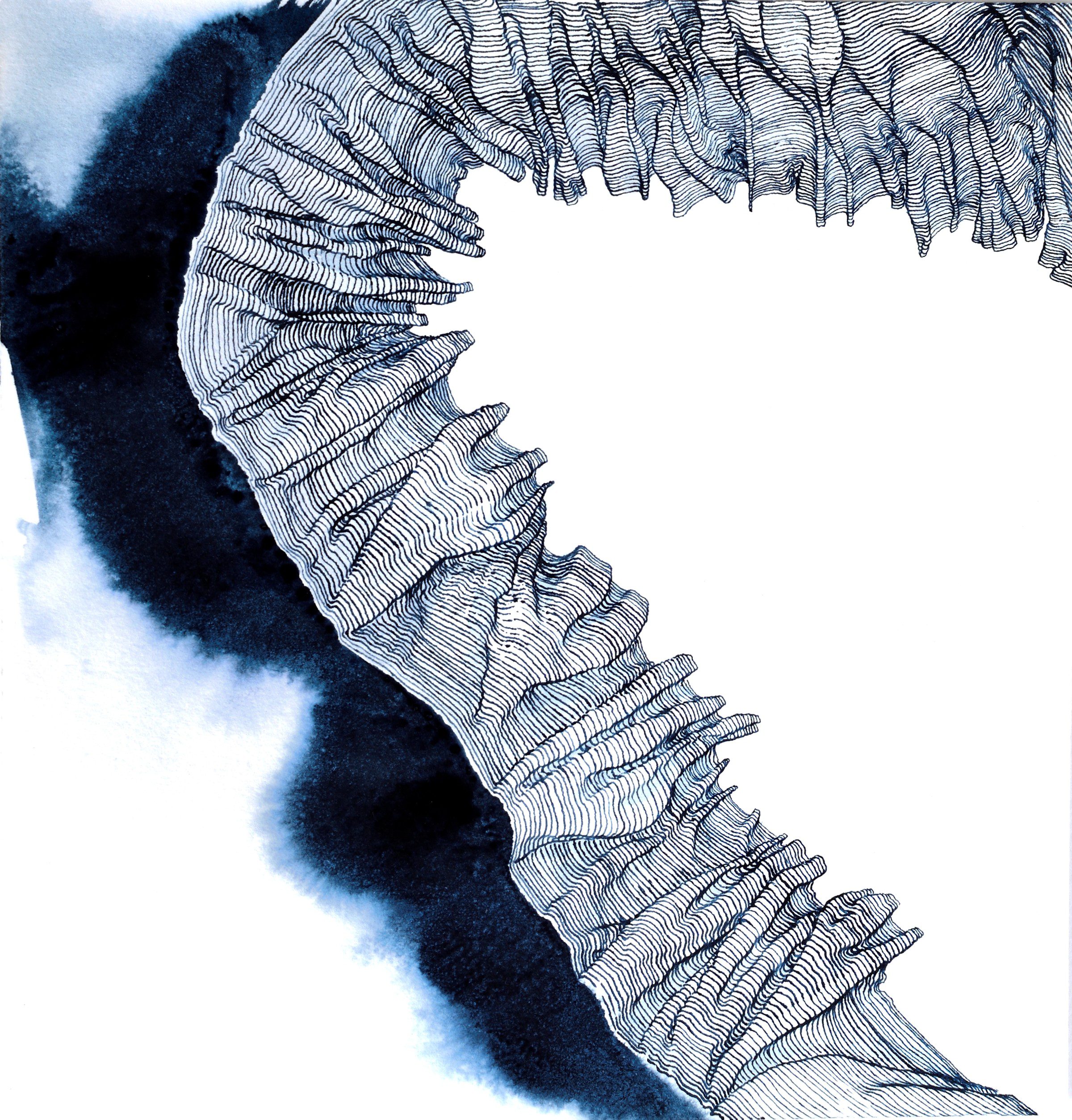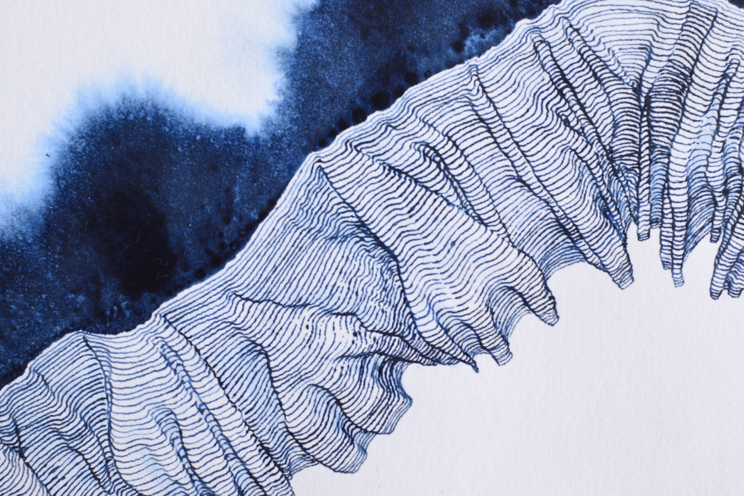 Liquid watercolor and Indian ink on handmade recycled cotton rag